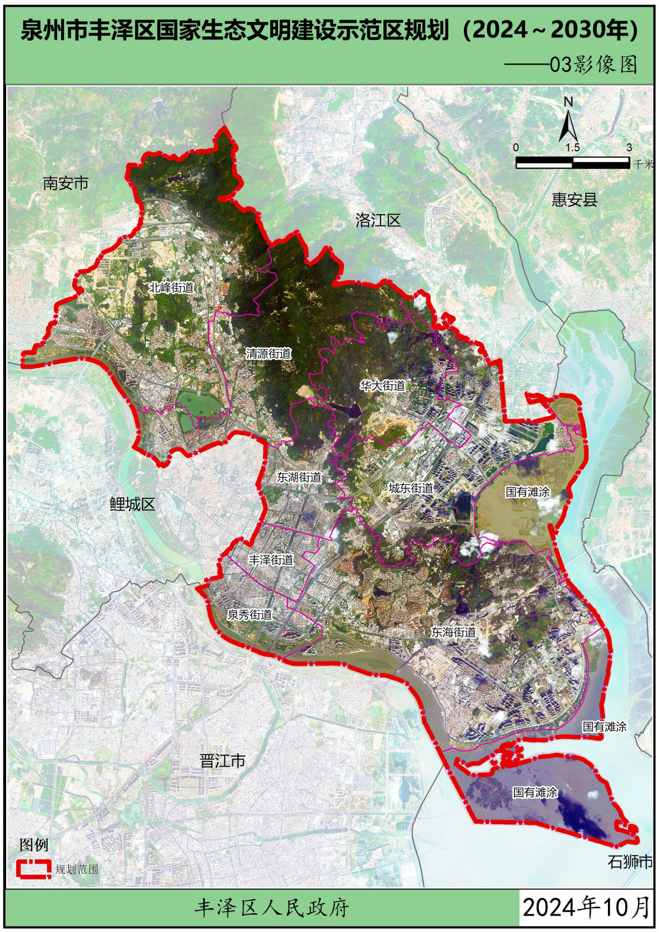 高举习近平新时代中国特色社会主义思想伟大旗帜,全面贯彻落实党的二十大、二十届二中全会精神,深入践行习近平生态文明思想,认真落实习近平总书记对福建工作的重要讲话重要指示批示精神,立足新发展阶段,完整、准确、全面领会和贯彻新发展理念,服务和融入新发展格局,以改革创新为动力,以满足人民日益增长的美好生活需要为目的,以全方位推进高质量发展为主题,坚持降碳、减污、扩绿、增长协同推进,持续深化生态文明建设,着力打造美丽城区,全力守好生态“高颜值”,促进发展“高质量”,服务民生“高品质”,全地域、全领域、全方位、全社会建设美丽丰泽,促进生态文明建设不断取得新进步,为奋力谱写全面建设社会主义现代化国家的丰泽篇章奠定坚实基础。