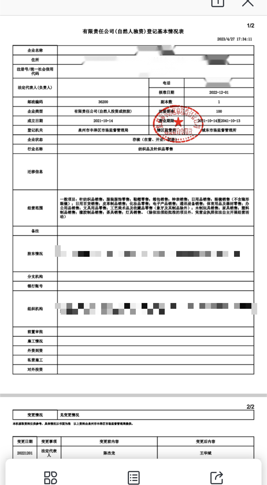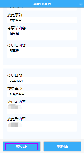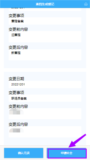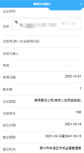 备注:企业信息不完整时,可自行选择“申请补全”再生成查档结果。